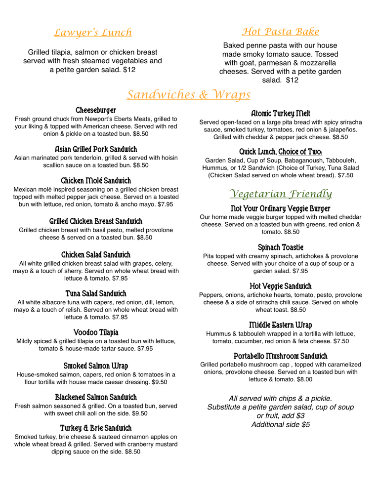 | Back to the top | Lunch Menu | Lunch Menu - Page 2 | Dinner Menu |
